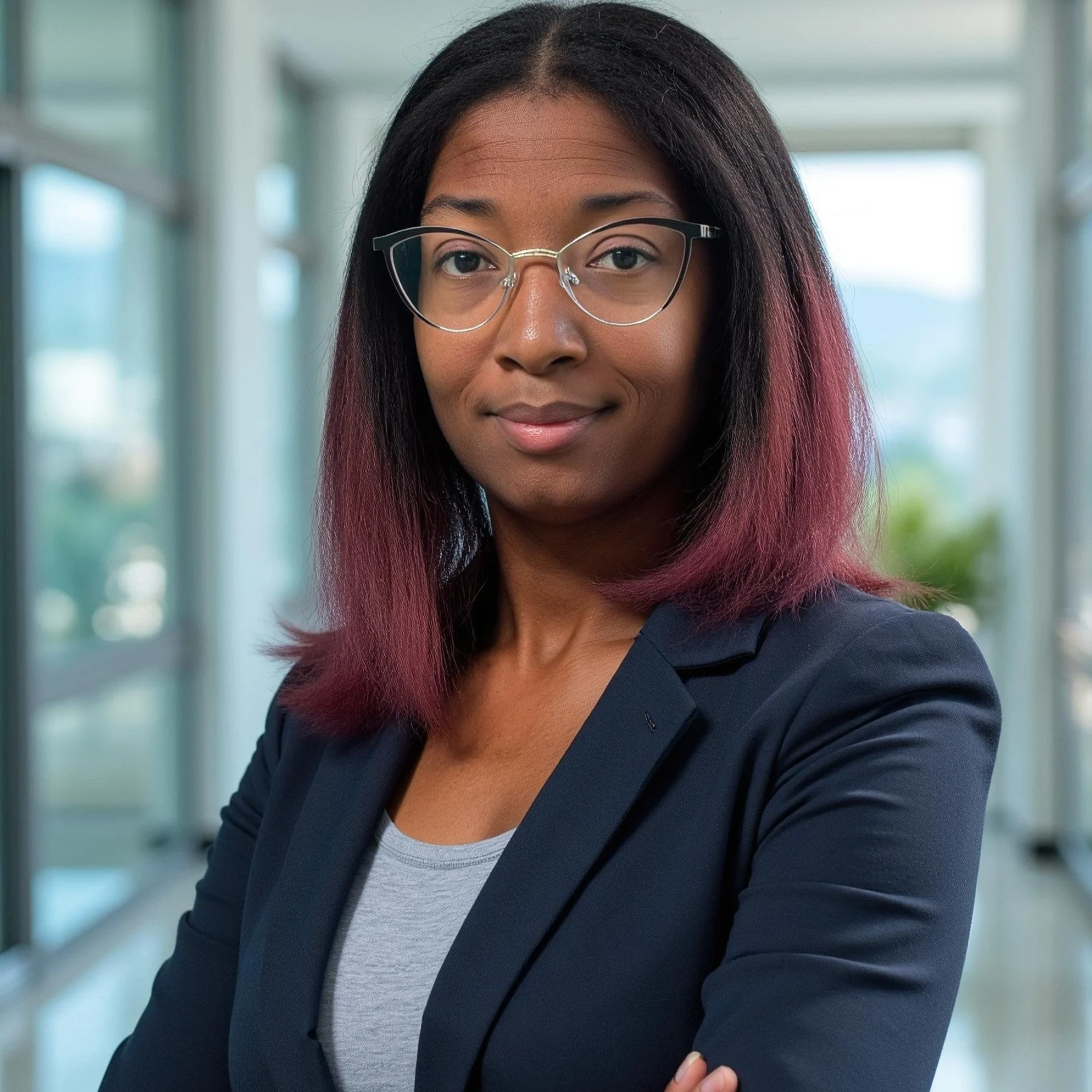 Portrait of a smiling man with glasses, wearing a dark blazer and blue shirt, set against a plain background.